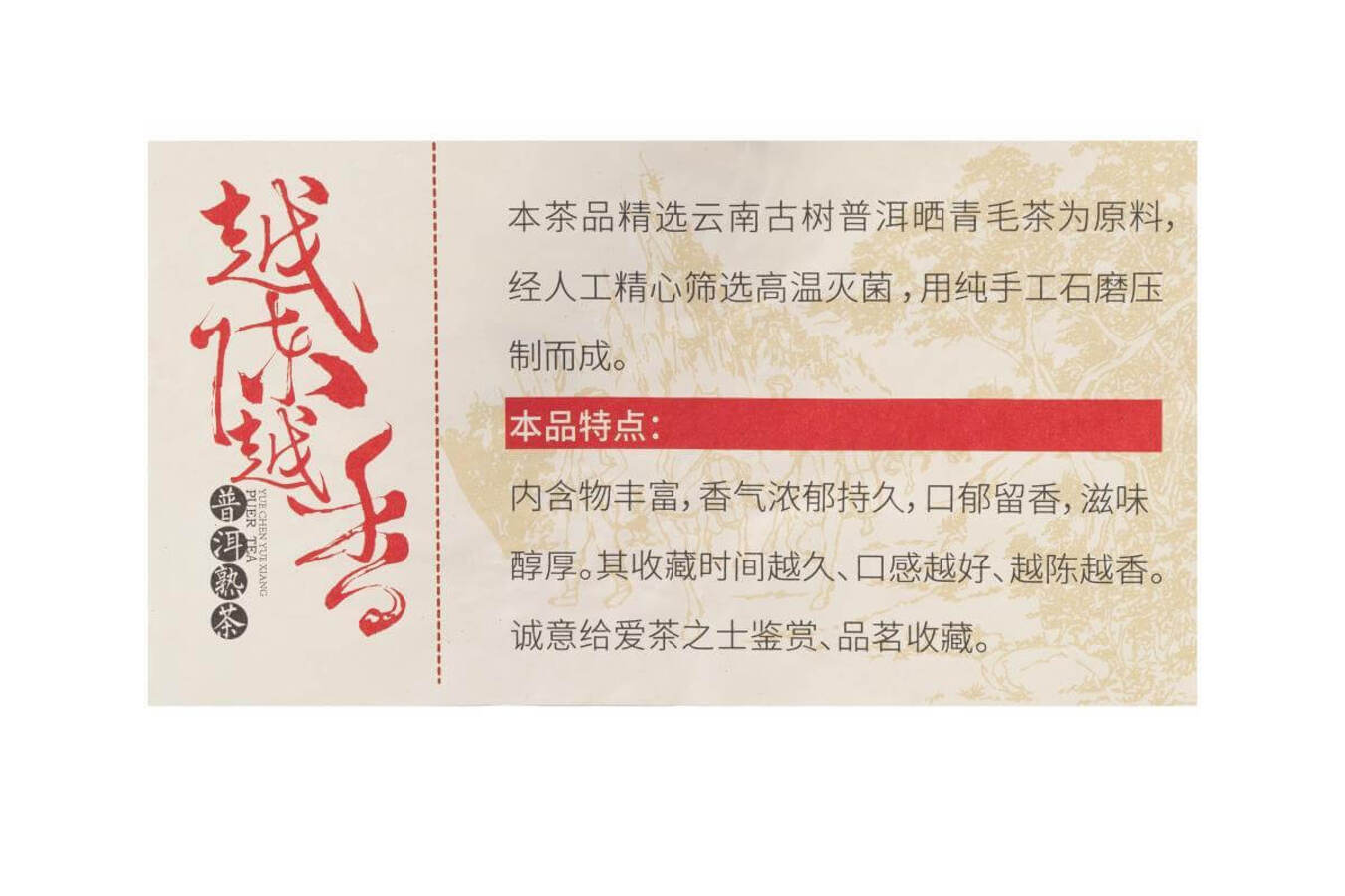 Наименование блина пуэра «Юэчэнь юэсян» (кит. 越陈越香, пиньинь yuè chén yuè xiāng) переводится как «чем более выдержанный, тем более ароматный» — это расхожее выражение, и часто используется в названиях пуэров, в данном случае, «Выдержанный аромат» — допустимый вариант перевода.