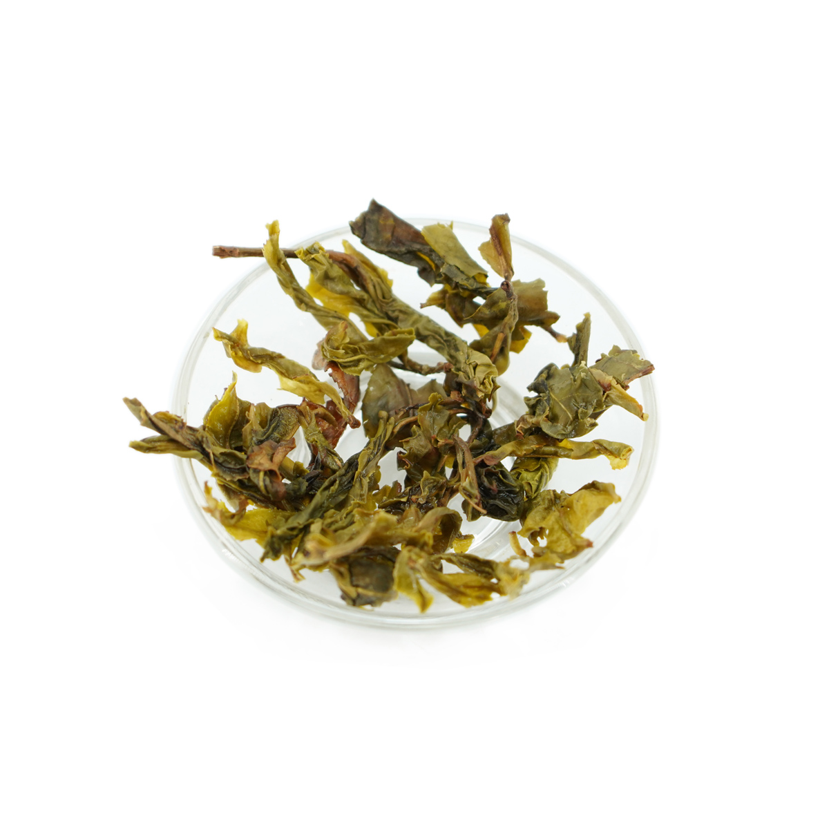 Чайные листья имеют светло-зеленый цвет с золотистыми вкраплениями. Листья крупные и грубые, что свидетельствует о их летнем сборе и отсутствии скрутки. Рассыпная форма чая делает его удобным для заваривания и позволяет лучше контролировать крепость настоя.