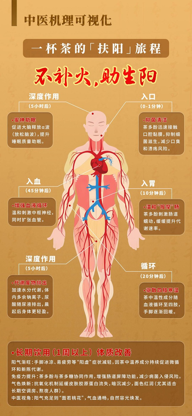 Отдельно позволим себе сказать про чайное состояние. Данный чай буквально запускает естественный поток энергии "Ян Ци" в теле человека. Чувствуется гармония, умиротворение и спокойствие. Тело разогревается, становится пластичным и лёгким как пушинка.