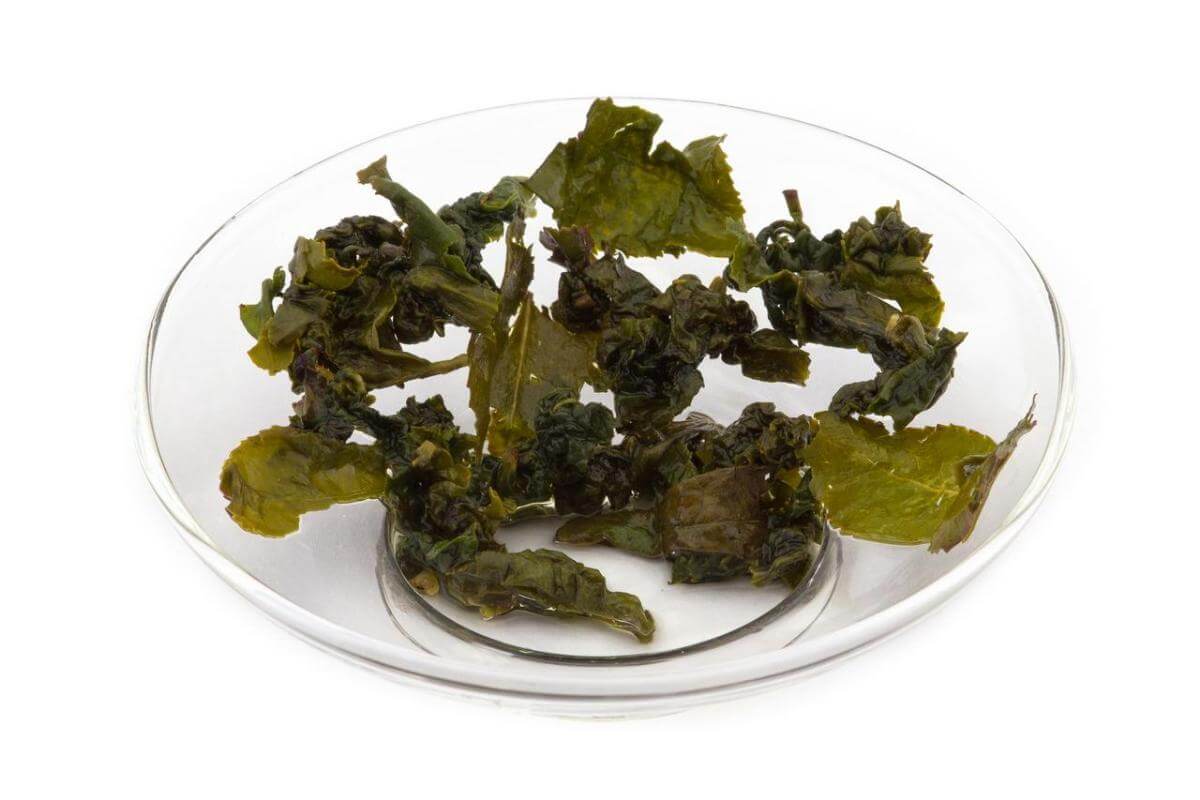 Это один из самых знаменитых улунов из уезда Аньси, на юге провинции Фуцзянь. Из за особенностей климата, влажности и туманности без резких перепадов температуры уезд Анси прозвали «Городом бесконечной весны». Идеальное место для выращивания чая ведь зимой нет сильных заморозков, а летом изнуряющей жары. Внешне туго скрученные чаинки из двух-трех верхних листочков на которых еле уловим Бай Хао «Белый ворс» с черенком похожи на маленьких крабиков. Цвет варьируется от светло-зеленого до синевато-темно-зеленого оттенка. Поэтому улуны и называют «Бирюзовыми» или «Нефритовыми»